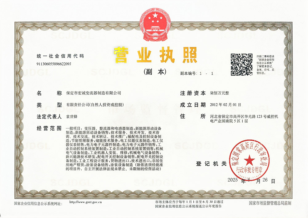 The Company has passed the comprehensive equipment testing from the third-party national center for power electronic technology. The product meets all tchnical performance requirements of JB/T8675.